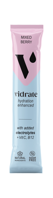 The fresh Vidrate flavours are naturally formulated and sweetened with Stevia, which replenishes electrolytes & minerals used during the day, especially after exercise.